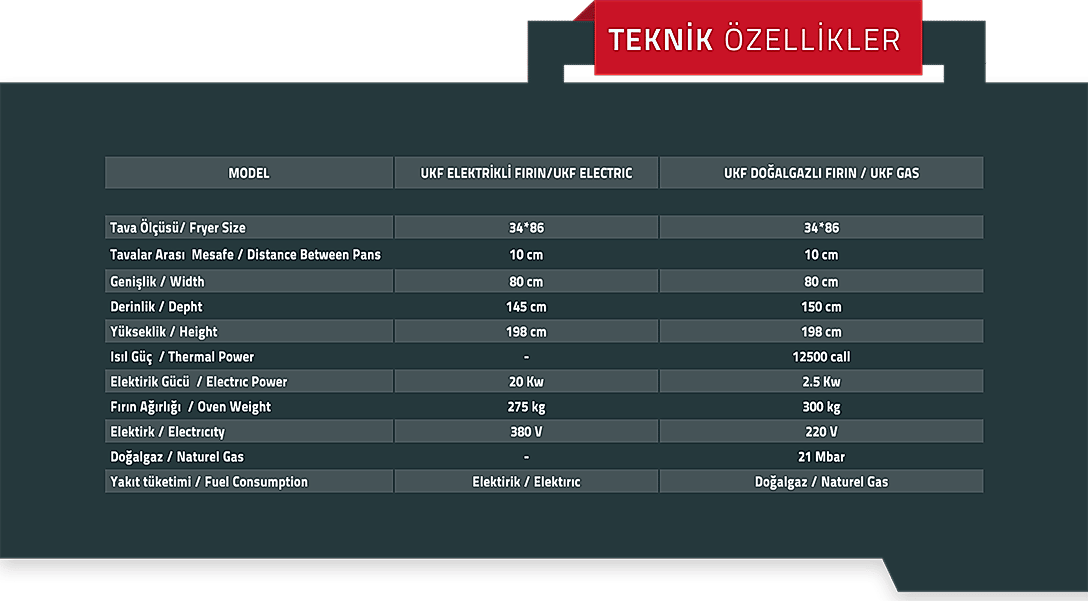9 tepsi kapasiteli fırınımız tamamen paslanmaz çelikten üretilmiş olup fırın içine yerleştirilmiş 2 adet fan sayesinde ısı sirkülasyonu homojen bir şekilde dağıtılıp ürünlerin eşit şekilde pişirilmesi sağlanır. Fırınlarımızda uygulanan özel izolasyon sayesinde yakıt tüketimi minimuma indirilmiştir. Yakıt şekli opsiyonel olarak (doğalgaz-elektrikli) tercih edilebilir.