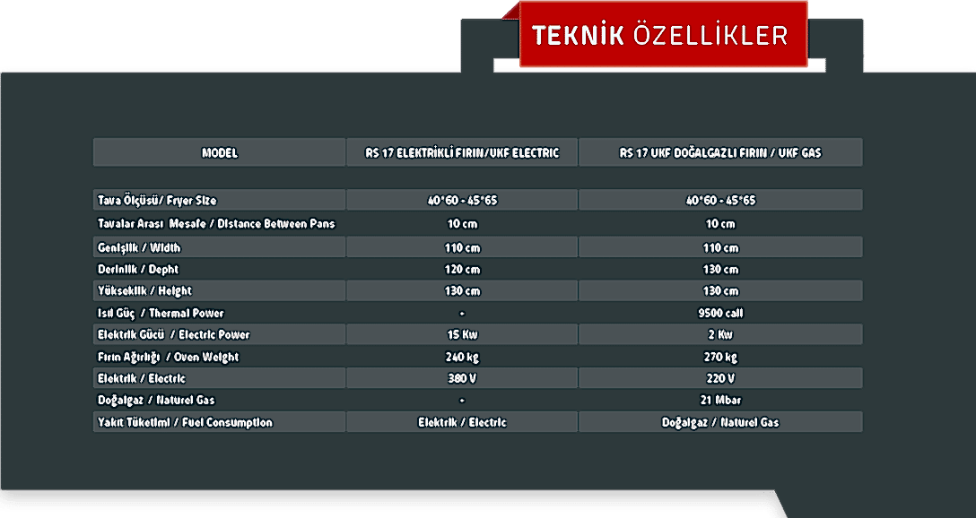Fırınımız tamamen paslanmaz çelikten üretilmiş olup fırın içine yerleştirilmiş 1 adet fan sayesinde ısı sirkülasyonu homojen bir şekilde dağıtılıp ürünlerin eşit şekilde pişirilmesi sağlanır. Fırınlarımızda uygulanan özel izolasyon sayesinde yakıt tüketimi minimuma indirilmiştir. Yakıt şekli opsiyonel olarak (doğalgaz-elektrikli) tercih edilebilir.
