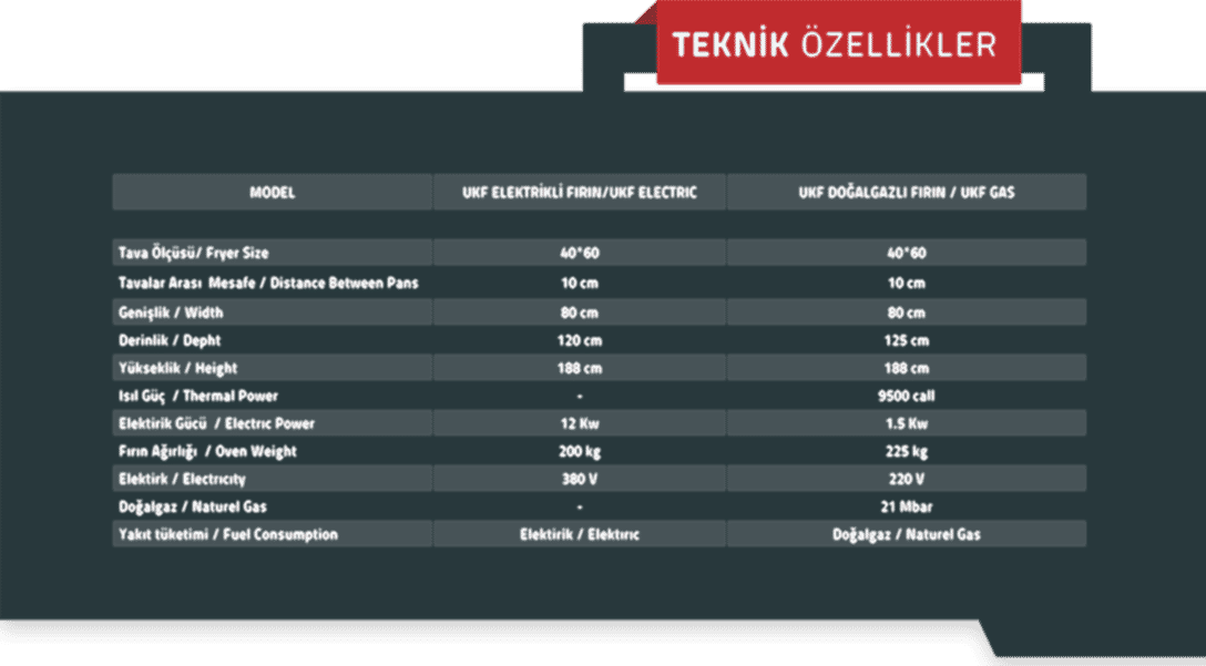 5 tepsi kapasiteli fırınımız tamamen paslanmaz çelikten üretilmiş olup fırın içine yerleştirilmiş 1 adet fan sayesinde ısı sirkülasyonu homojen bir şekilde dağıtılıp ürünlerin eşit şekilde pişirilmesi sağlanır. Fırınlarımızda uygulanan özel izolasyon sayesinde yakıt tüketimi minimuma indirilmiştir. Yakıt şekli opsiyonel olarak (doğalgaz-elektrikli) tercih edilebilir.